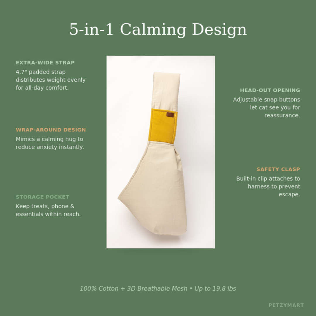 Your cat stays relaxed, supported, and contained as you walk, drive, or visit the vet.